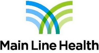 - DM0000: The mark consists of three curving blue lines intersecting with three curving green lines atop the wording "MAIN LINE HEALTH" in black.