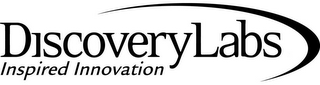 DM0000: The mark consists of the element "DISCOVERYLABS" is in the bold typeface; the element "INSPIRED INNOVATION" is positioned under the element "DISCOVERYLABS" and is depicted in the italic typeface; the curved line begins above the letter "O" in "DISCOVERYLABS", then it continues along the element "DISCOVERYLABS", curves and ends below the letter "S".