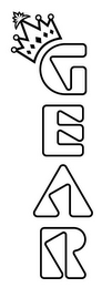 - DM0000: The mark consists of the stylized word "GEAR" appearing vertically in white capital letters outlined black, with a five point white crown outlined in black located at the top, left side of the "G", with small circles on the top of the two points located on both the left and right side of the larger middle point and a seven point leaf design on the top middle point, and five black diamonds inside the crown.
