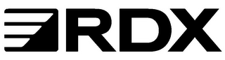 - DM0000: The mark consists of the stylized text "RDX", and to its left, a rectangle with three horizontal bars partially overlaid thereon.