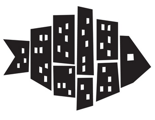 - DM0000: The mark consists of a fish formed by irregular rectangles and squares resembling buildings with windows.