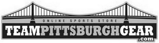 DM0000: The mark consists of a bridge design under which the words "ONLINE SPORTS STORE" and "TEAMPITTSBURGHGEAR.com" appear.