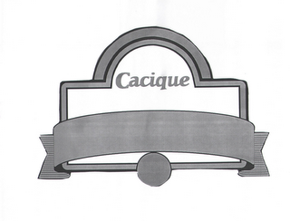 - DM0000: The mark consists of a fanciful design of a rectangle with a rounded top; with a ribbon-style banner across the lower middle of the design; a circle at the bottom center and the word, "CACIQUE".