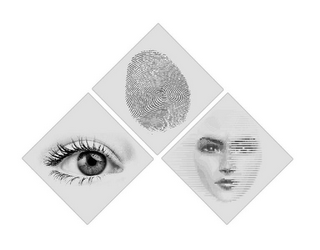 - DM0000: The mark consists of three squares laid out in the shape of an upside down V. The top square includes a fingerprint, the right square includes a woman's face that appears pixelated, and the left square includes an eye.