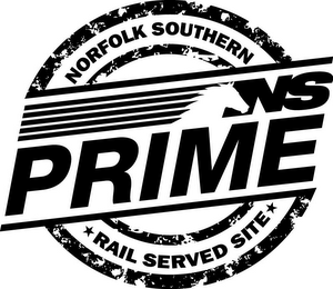 DM0000: The mark consists of The "NS" horse head and speed lines logo above the word "prime", circled by the words "Norfolk Southern Rail Served Site".
