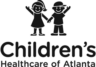 DM0000: The mark consists of a stylized image of a young girl wearing a dress and having a ponytail holding hands with a young boy wearing pants, a shirt, and a baseball cap, with the young girl on the left and the young boy on the right with the young girl and young boy positioned above the wording, "CHILDREN'S HEALTHCARE OF ATLANTA".