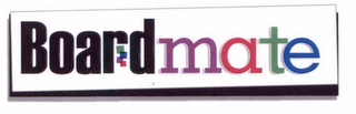 - DM0000: The mark consists of The word "BOARD" in black stylized letters. There are 4 squares stacked under the letter "R" in the colors green, blue, purple and pink. The word "MATE" appears next to "BOARD" in purple, pink, green and blue stylized letters. The words and square design appear on a white rectangle that overlaps a black and gray rectangle.