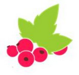 - DM0000: The mark consists of four red currant berries with a three-segment green leaf and a partial red berry seen behind the leaf.