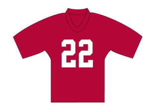 - DM0000: The mark consists of the product configuration of a collegiate football jersey, which includes the color combination of a crimson red jersey with white numbers with no other indicia, with the white numbers appearing on the chest and the crimson red covering the entire outer surface of the jersey. The broken lines of the drawing show the position of the colors and the numbers on the goods and form no part of the mark, serving as a positional reference only.
