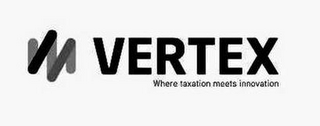 DM0000: The mark consists of electrostatic lines to the left of the word "VERTEX" in capital letters which is above the logo "Where taxation meets innovation".