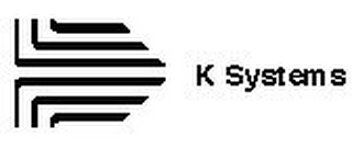 - DM0000: The mark consists of the wording "K SYSTEMS" in black and black straight, curved, and horizontal bars or bands.