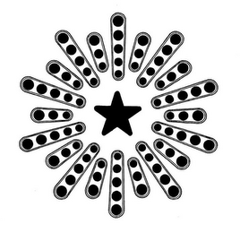 - DM0000: The mark consists of a five-pointed star with alternating oblong circles containing three circles and oblong circles containing five circles all emanating outward therefrom in a pattern that depicts a star-like burst around the star design.