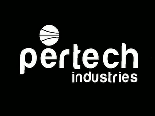 - DM0000: The mark consists of a circle located just above the leftmost "E" in the character string "PERTECH INDUSTRIES". The circle has three contrasting bands emerging from the right side, close to each other, and, flowing leftward, staying consistent in width, but, diverging outward from each other. The bands divide the circle into four parts. The word "INDUSTRIES" is of a reduced character size, and, placed directly underneath the partial word "TECH".