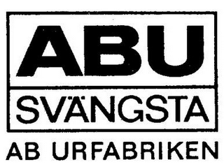 DM0000: The mark consists of a box bisected at the lower third with a line; above the line is the word "ABU" in large capital block letters; below the line and still within the box is the upper case word "SVANGSTA"; under the box, also in upper case are the words "AB URFABRIKEN".