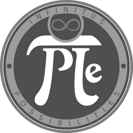 DM0000: The mark consists of a series of concentric rings and circles, the "PIE" centered and stylized to suggestively appear as the symbol Pi, the word "INFINITUS" arching above and the word "POSSIBILITIES" arching below - the infinity symbol appearing above "PIE".