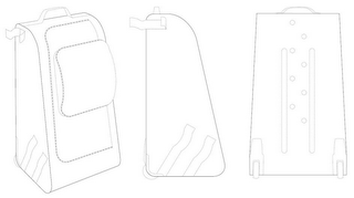 - DM0000: The mark consists of a three-dimensional configuration of a slightly tapered, wedge shaped hockey bag that includes a rear wall and bottom wall oriented generally at a right angle with respect to one another and a partially curved front wall extending therebetween. The elements shown in dotted lines, namely, the top handle, side straps, wheels, rear wall vent holes, zippers, front flap, and front pouch are not part of the mark and serve only to show the placement of the mark.