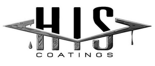 - DM0000: The mark consists of the letters "H I S" with the word "COATINGS" below the letters with angular lines encircling the letters "H I S" with paint dripping on either side from the angular lines.