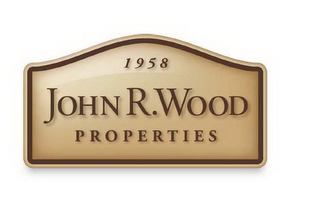 DM0000: The mark consists of a rectangle with a semi-circle on top with a golden background and the terms "JOHN R. WOOD PROPERTIES" in brown lettering centered within the rectangle, and "1958" centered in the semi-circle.