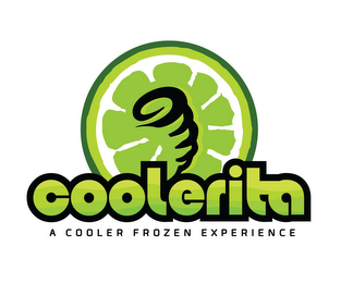 DM0000: The mark consists of the wording "COOLERITA" in a green and black stylized font, above the wording "A COOLER FROZEN EXPERIENCE" in a black stylized font, with the design of a lime slice in green and white with a black tornado in its middle above the wording "COOLERITA".