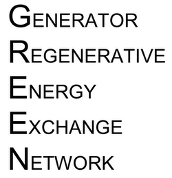 DM0000: The mark consists of the terms GENERATOR, REGENERATIVE, ENERGY, EXCHANGE and NETWORK one on top of the other, with the first letter of each term vertically aligned so that the term GREEN is visible.