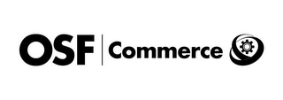- DM0000: The mark consists of the letters "OSF" separated from the word "COMMERCE" by a vertical line. To the right of the word "COMMERCE" is a logo element comprised of a gear design encircled with a ring and a half ring over the top of the ring design.