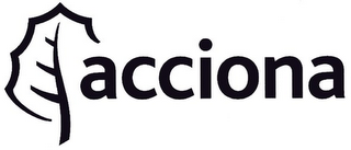 - DM0000: The mark consists of the word "acciona" in block print, combined with a leaf design overlapping the initial "a" in "acciona".