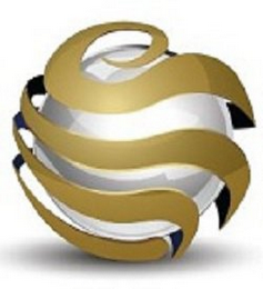 - DM0000: The mark consists of a white sphere with gold swirls around the sphere with shading in grey and black to suggest a three dimensional image.