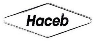 - DM0000: The mark consists of the word "HACEB" in stylized black letters inside a four sided grey diamond like figure outlined in black.