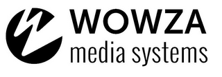 - DM0000: The mark consists of a stylized diagonal letter "W" comprising negative space within a circle, with the beginning and end strokes of the "W" appearing to extend beyond the edge of the circle, on the left of the word "WOWZA" and the words "MEDIA SYSTEMS".