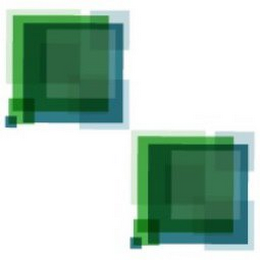 - DM0000: The mark consists of two offset square designs composed of overlapping green and blue shapes.