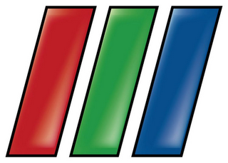- DM0000: The mark consists of three parallelograms. The parallelograms are in a row, parallel to each other. The parallelogram on the left is red with a red and white gradient in the top left and bottom right corners to create a glow effect, the parallelogram in the middle is green with a green and white gradient in the top left and bottom right corners to create a glow effect, and the parallelogram on the right is blue with a blue and white gradient in the top left and bottom right corners to create a glow effect. Each parallelogram is outlined in black.