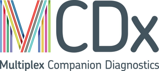 DM0000: The mark consists of the letters, "MCDx" above the words "Multiplex Companion Diagnostics". "CDx" and "Multiplex Diagnostics" are black. The letter "M" in "MCDx" contains multi-colored stripes of the following colors, grey, pink, blue, red, green, yellow. The word "Multiplex" is in bold type.