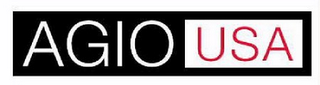 - DM0000: The mark consists of the wording AGIO USA. The word AGIO appears in white block letters on a black rectangular background that surrounds the word USA which appears in red block letters on a white rectangular background.