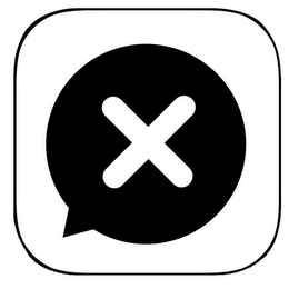- DM0000: The mark consists of a square with round corners and inside the square, a circular, solid conversation bubble with an angled pointer pointing to the bottom left corner of the square. The conversation bubble has an X mark at the center.