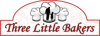 - DM0000: The mark consists of The words "Three Little Bakers" written in a red stylized font, underneath a set of three white bakers hats, with gray shadows. The largest hat contains a black silhouette of a man and a young girl holding hands. The red border surrounding the logo consists of a rectangle on the bottom, interrupted by a half-oval. The background is a white field with light-red designs.