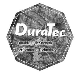 DM0000: The mark consists of a first octagon filled with tree branches and leaves, a second octagon adjacent to and within the first octagon, a stylized wording "DuraTec" in the upper portion of the second octagon, a stylized wording "Durable High Strength" in the lower portion of the second octagon under the "DuraTec", and a second wording "Performance Technology" under the "Durable High Strength".