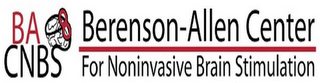 DM0000: The mark consists of the stylized letters "BA" in the color red above the stylized letters "CNBS" in the color black, to the right of which is a drawing of a brain in the colors black and white outlined with a bold black line that terminates on one end in the "S" of "CNBS" and on the other end in a figure eight in the color red. To the right are the stylized words "BERENSON-ALLEN CENTER" in the color black, underlined in red, which are above the stylized words "FOR NONINVASIVE BRAIN STIMULATION" in the color black.