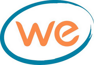 - DM0000: The mark consists of the stylized wording "WE" in orange inside a blue oval with the right side partially open. The color white is not claimed as a feature of the mark and represents background or transparent area.