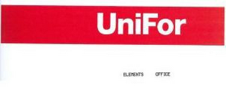 - DM0000: The mark consists of the term "UNIFOR" in white in a stylized font inside a red box. The terms "ELEMENTS OFFICE" appears in black under the red box.