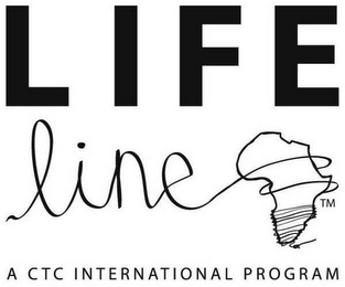 DM0000: The mark consists of the words "LIFE line" written with the word "line" written in cursive font with an extension of the letter "e" continuing at the end of the word to wrap around an outline of an image of the African continent. The wording "A CTC INTERNATIONAL PROGRAM" is written below.