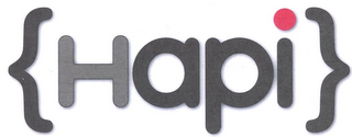 - DM0000: The mark consists of left and right braces in black enclosing the letter "H" written in gray, the letters "a" and "p" written in black, and the letter "i" written with the lower bar in black and the dot in red.