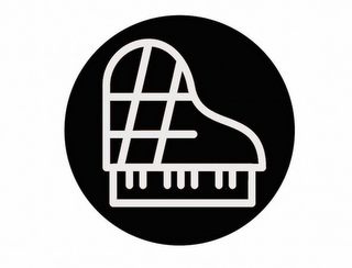- DM0000: The mark consists of a stylized piano appearing within a shaded circle carrier; crisscrossing lines resembling a sharp or pound symbol appear within the piano.