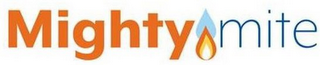 - DM0000: The mark consists of the wording "Mighty mite", with the word "Mighty" appearing in bold orange stylized font, and the word "mite" appearing in a thin blue stylized font. The words are separated by a water drop and a flame appearing one on top of the other, the top drop appearing in light blue, and the bottom flame appearing with white in the center, yellow around the white and orange on the outside.