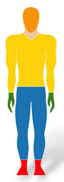 - DM0000: The mark consists of a human figure having red feet, blue legs, yellow torso and arms, green hands, an orange head, and a beige neck; the entire man has spacing that separates the head, neck, torso, hands, legs, and feet. There is no claim to background color.