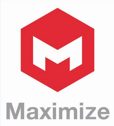 - DM0000: The mark consists of the word "MAXIMIZE" in gray below a six sided polygon shaded red with a stylized "M" displayed in white in the middle.