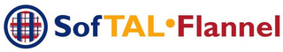 - DM0000: The mark consists of a blue circle with a design of a fabric pattern of horizontal and vertical intersecting lines in red and blue inside the circle and the words "SofTAL" and "Flannel" where "Sof" is in blue, "TAL" in yellow and "Flannel" in red, with a yellow dot between the words "SofTAL" and "Flannel". The white is not part of the mark and represents background area.