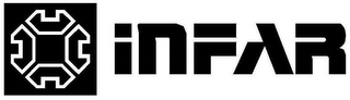 - DM0000: The mark consists of a graphic design consisting of a square block in a dark color containing four graphic depictions of wrench heads in reverse white color, with each of the wrench heads facing each of the four sides of the block, and shown beside the block the words '"INFAR" in stylized font, with the first two letters in lowercase, and the other three letters in uppercase, with all five letters of the same height.