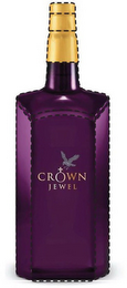 - DM0000: The mark consists of a three-dimensional configuration of a purple bottle with a gold cap and neck. The gold wording "CROWN JEWEL" is positioned in the middle of the purple bottle, and the letter "O" has a gold cross extending vertically from the top of the letter. Above the wording "CROWN JEWEL" is the design of a black, white, and grey bird with wings outstretched. The broken lines depicting the outline of the bottle, the bottle top, and bottle shape, indicate placement of the mark on the goods and are not part of the mark.