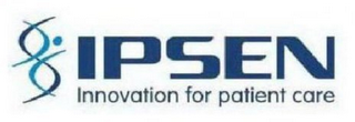DM0000: The mark consists of the color dark blue which appears in the wording "IPSEN INNOVATION FOR PATIENT CARE" and the S-shaped curved line in the design and the color light blue which appears in the two smaller curved lines and the dot in the design.