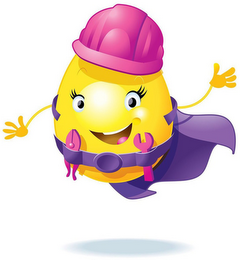 - DM0000: The mark consists of an animated yellow sun with arms, wearing a pink hard hat, a purple cape, and a purple tool belt with a pink wrench and pink pliers. The animated yellow sun also has white and black eyes, white teeth, a brown inner mouth, and pink tongue.